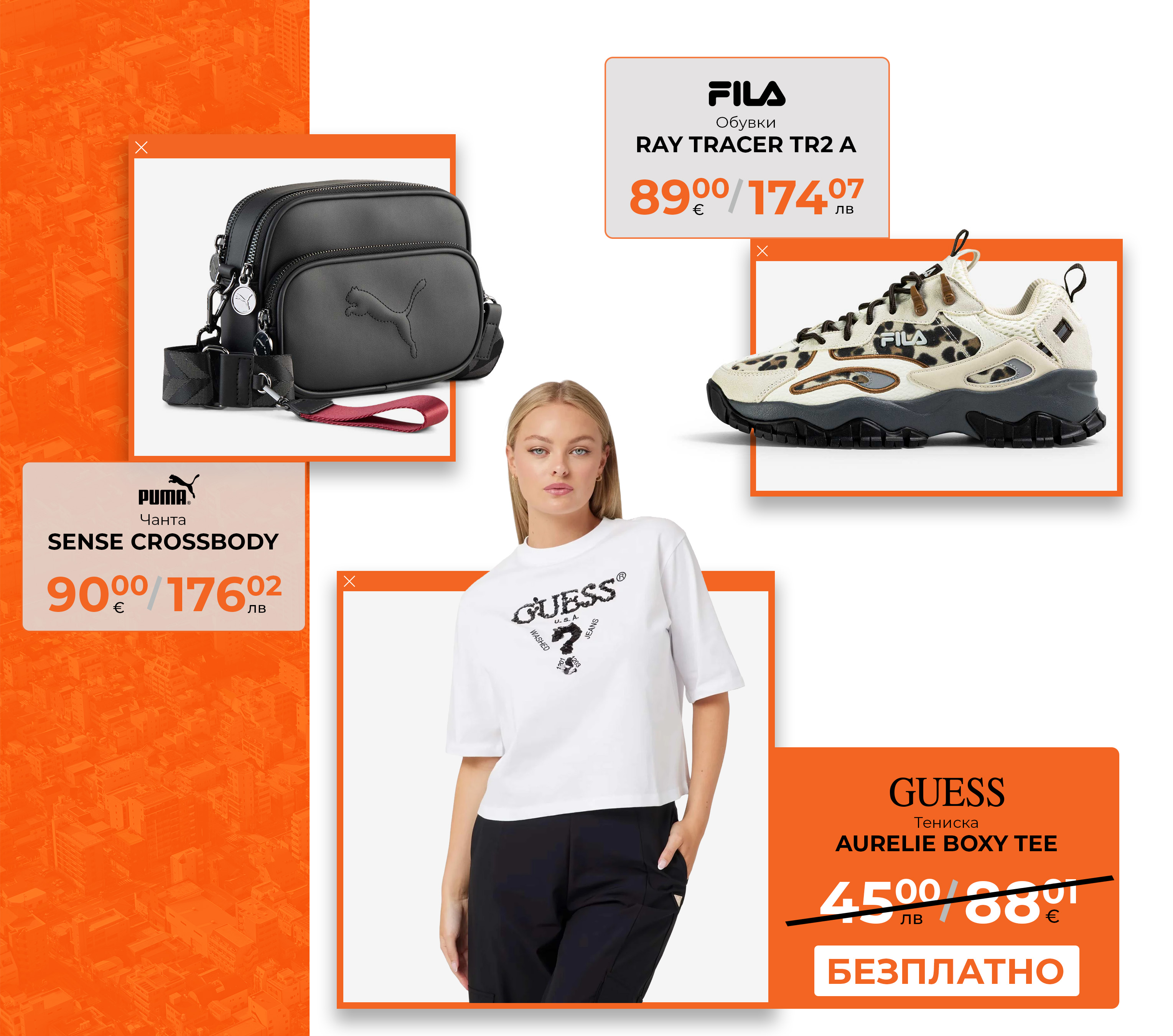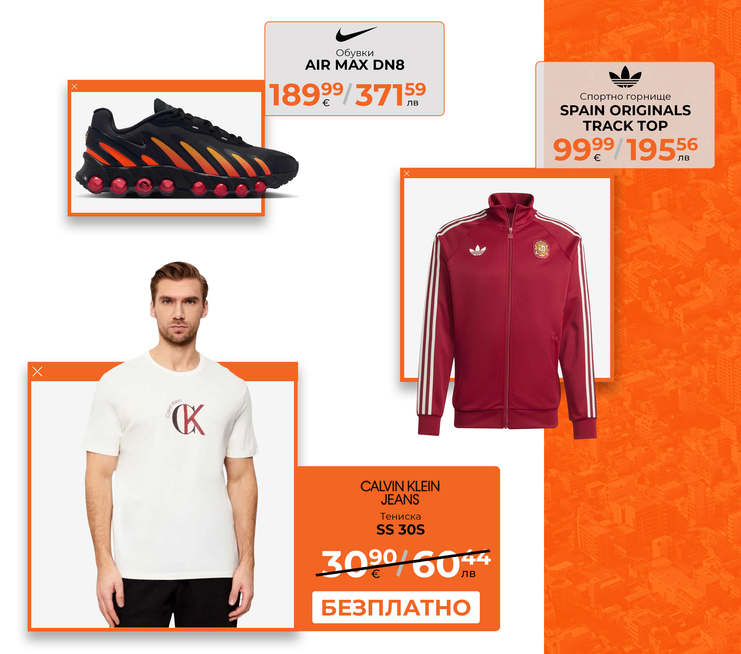 - Офертата е валидна за периода от 09.04 до 26.04.2026 г. и не може да се комбинира с други отстъпки. В кампанията участват всички облекла, обувки и аксесоари на редовна, ненамалена цена.